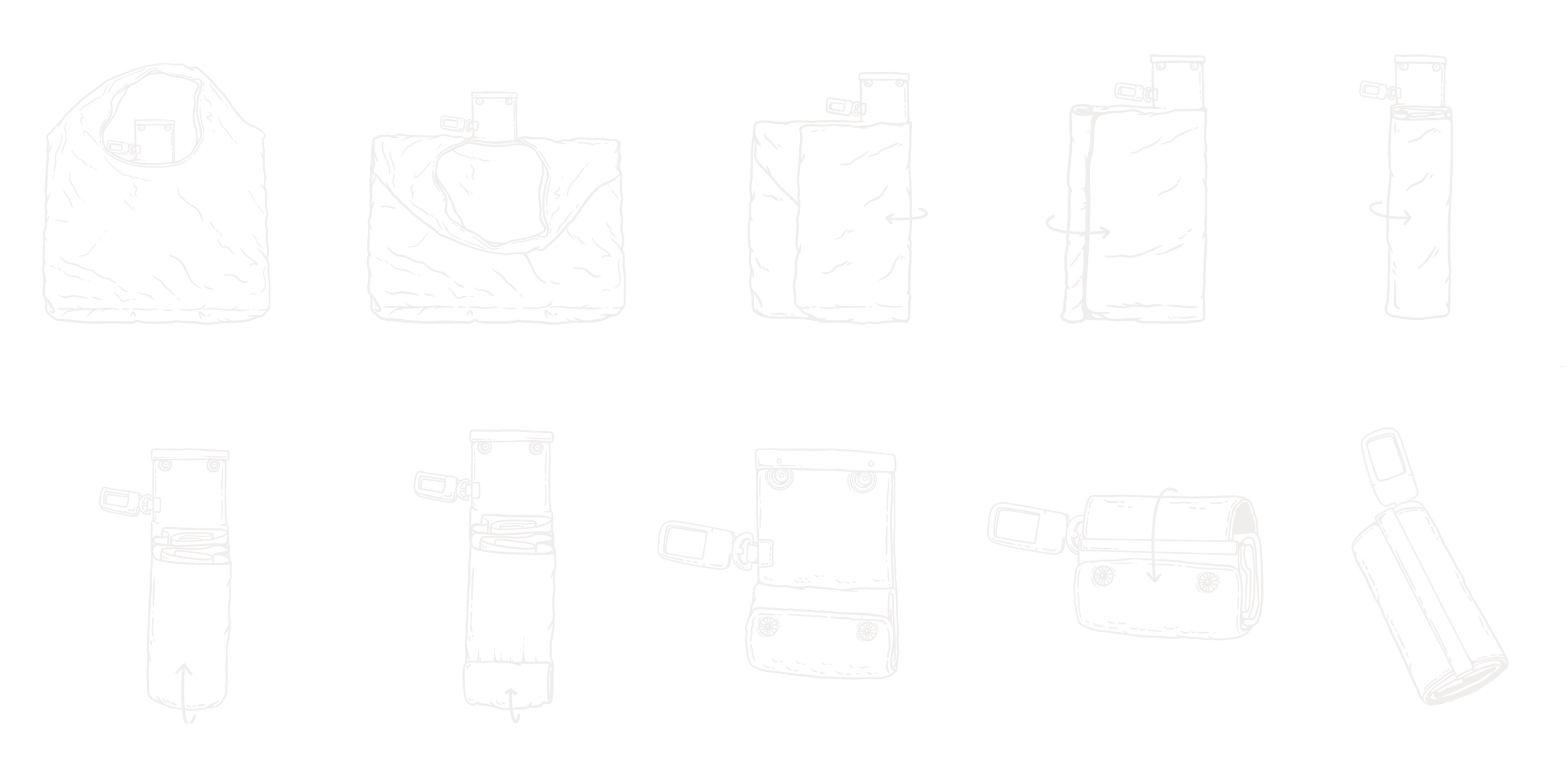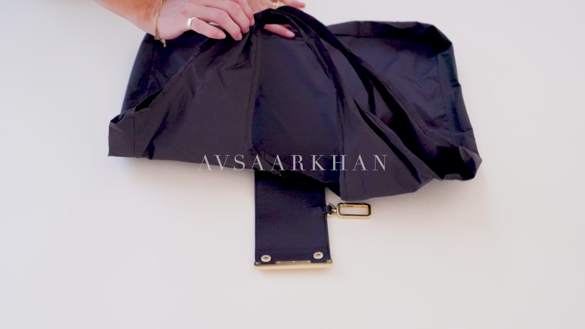 Avsaarkhan-аа эвхэхдээ эхлээд бариулыг доош нь нугал. Дараа нь уутыг арьсан хавчаартай тааруулан нугалж, гуравны нэг болгон өнхрүүлэн, явж байхдаа үрчлээсийг тэгшил. Эцэст нь сайтар чанга өнхрүүлээд түгжээгээ дарж хааагаарай.